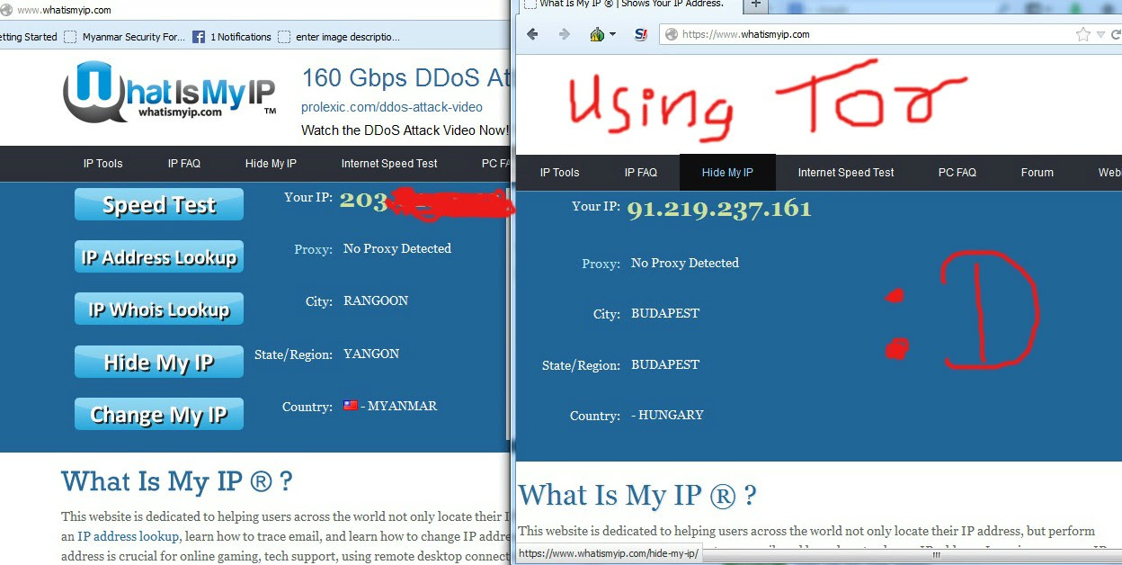 Tor ကုိအသုံးျပဳမယ္ဆုိရင္ ကြ်န္ေတာ္တုိ႔အေနနဲ႔ အင္တာနက္မွာ စိတ္ခ်လက္ခ် Browsing လုပ္လုိ႔ရပါတယ္။ သင့္ရဲ႕ browsing history ကုိလုံးဝ Trace လုိ႔မရပါဘူး။ သူ႔ရဲ႕အစြမ္းကေတာ့ Military ပုိင္းကေတာင္မွ ခင္ဗ်ားကုိ လာလုပ္လုိ႔မရပါဘူး။ ကမၻာမွာရွိတဲ့ ဘယ္အဖြဲ႔အစည္းကမွ ခင္ဗ်ားရဲ႕ Browsing Data ကုိၾကားဝင္ဖမ္းယူဖုိ႔ မစြမ္းႏုိင္ပါဘူးတဲ့။ ဒီေလာက္ဆုိ Tor ဆုိတာကုိ ခင္ဗ်ားစိတ္ဝင္စားသြားျပီမလား။
